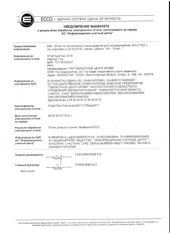 ГКП на ПХВ "ОБЛАСТНОЙ ЦЕНТР КРОВИ" МАНГИСТАУСКОЙ ОБЛАСТИ